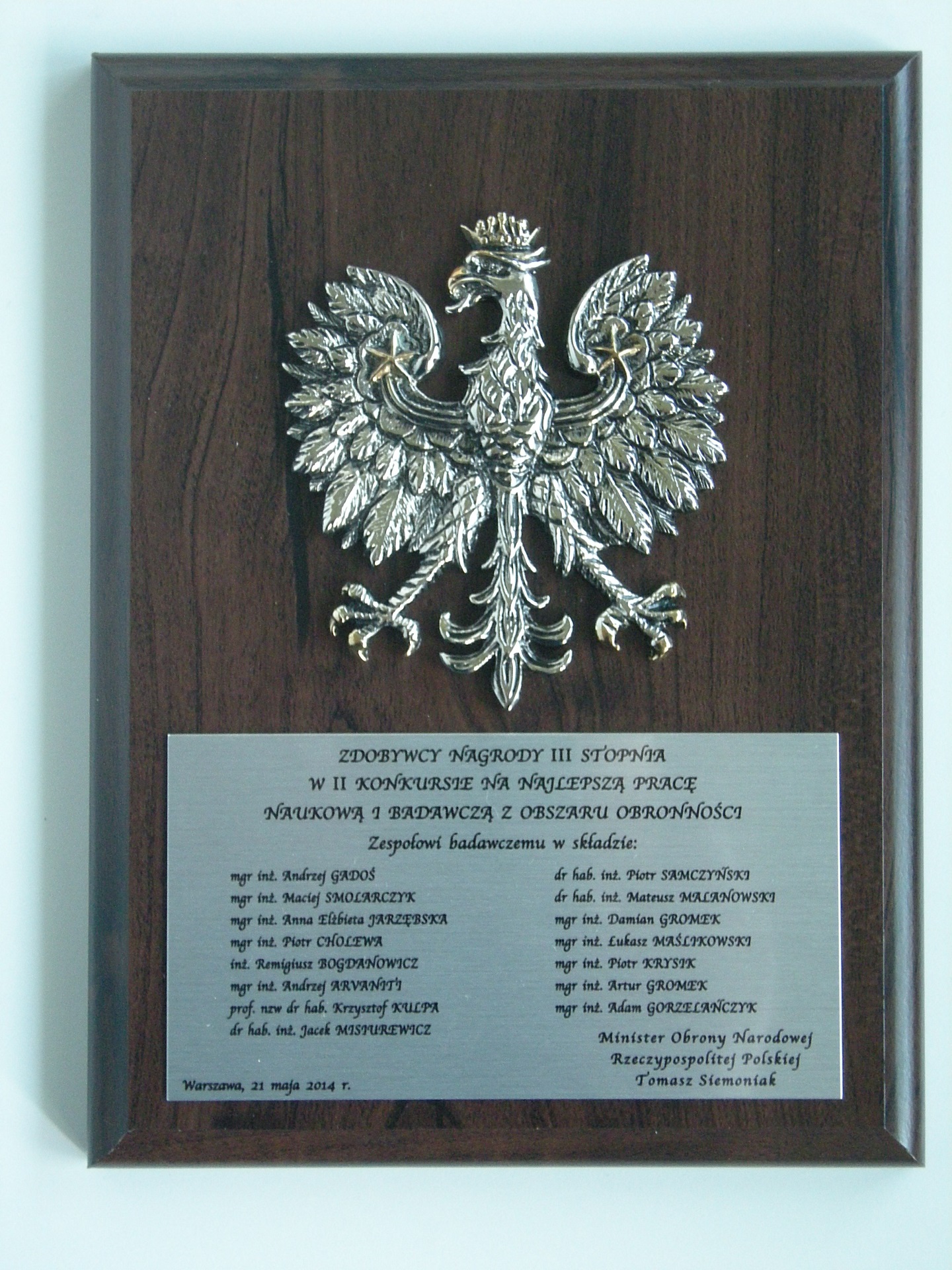 Zespół projektowy z Bumar Elektronika S.A. otrzymał nagrodę III stopnia w II konkursie Ministerstwa Obrony Narodowej na najlepszą pracę naukową i badawczą z obszaru obronności. Nagrodzonym projektem jest praca badawcza pt. „Projekt i wykonanie modułów programowych i sprzętowych, dla realizacji trybów AIS, ISAR, HISAR i ECCM w wielofunkcyjnym radarze pokładowym dla patrolowych samolotów rozpoznania morskiego”. Skład zespołu projektowego ze strony Bumar Elektronika S.A. to m.in.: Andrzej Gadoś (Kierownik Projektu), Andrzej Arvaniti, Anna Jarzębska, Remigiusz Bogdanowicz, Maciej Smolarczyk. Celem Konkursu na najlepszą pracę naukową i badawczą z obszaru obronności jest promowanie dobrych praktyk i efektywności realizacji badań naukowych w obszarze obronności państwa. Konkurs adresowany jest do uczelni wyższych, instytutów badawczych, towarzystw naukowych, przedsiębiorstw i konsorcjów naukowo-przemysłowych. Konkurs objęty jest Honorowym Patronatem Prezydenta Rzeczypospolitej Polskiej Bronisława Komorowskiego.