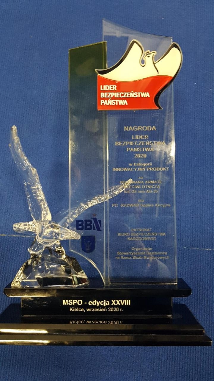 Nagrodę w kategorii „Innowacyjny Produkt” zdobyła przeciwlotnicza armata kal. 35 mm (AG-35). Jury konkursu doceniło nie tylko sam produkt, ale również armatę jako element systemu obrony przeciwlotniczej bardzo krótkiego zasięgu w różnych ukompletowaniach. Statuetkę wraz z certyfikatem odebrał Prezes Zarządu PIT-RADWAR SA – dr hab. Krzysztof Kluza.