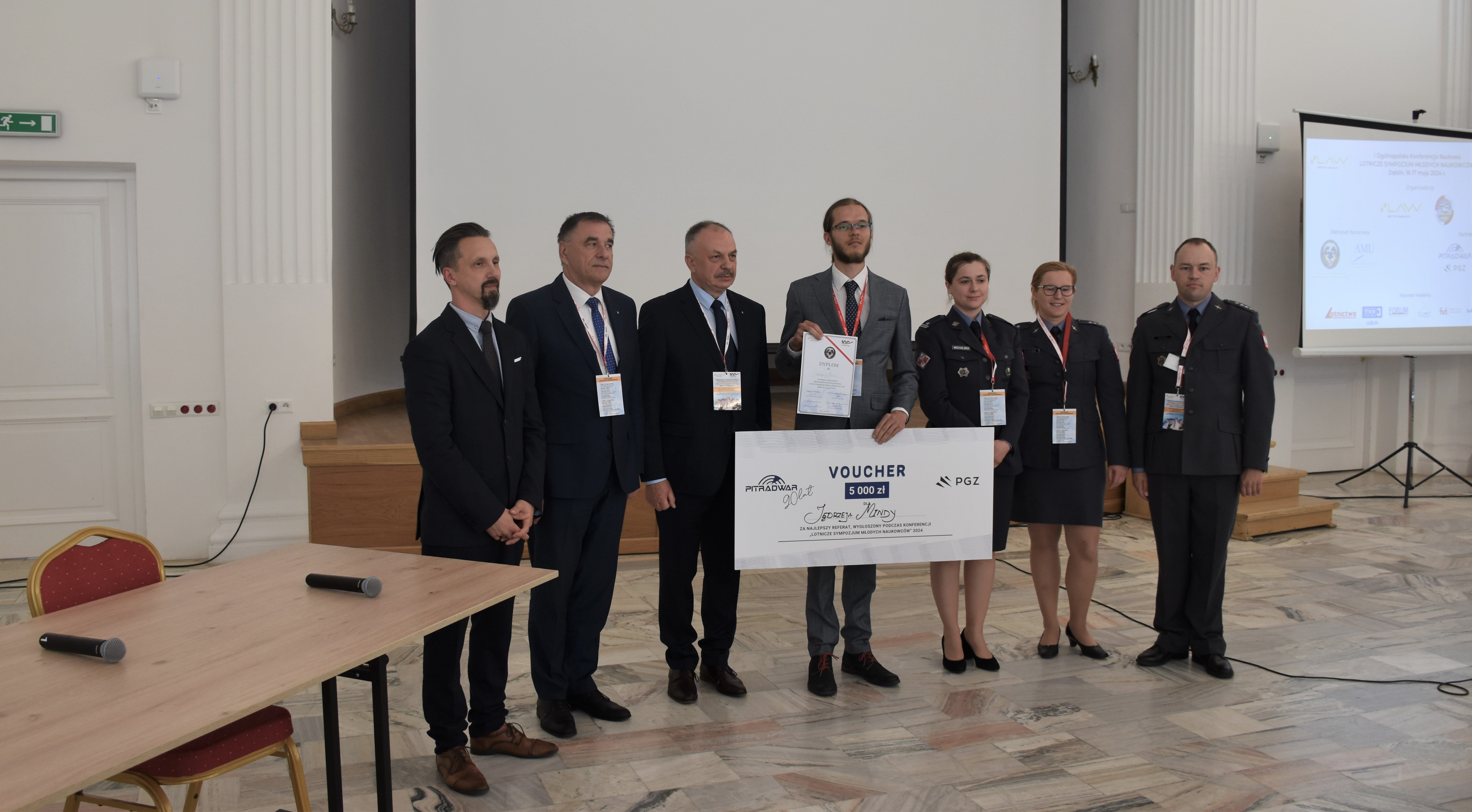 Nagrodę główną - voucher o wartości 5000 zł od PIT-RADWAR za referat "Stanowisko do badania parametrów śmigłowych zespołów napędowych dronów" zdobył Jędrzej Minda z Akademii Górniczo-Hutniczej.