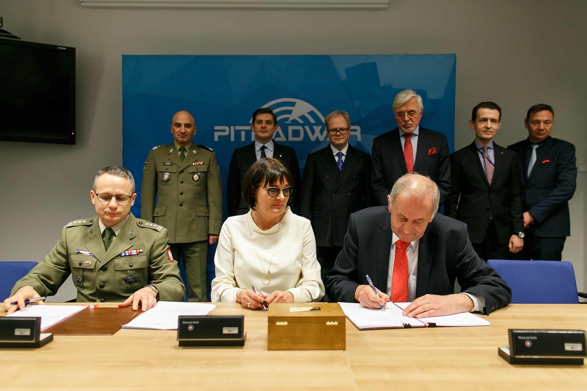 16 grudnia 2015 r. w siedzibie Spółki PIT-RADWAR S.A. odbyło się uroczyste podpisanie umowy pomiędzy PIT-RADWAR S.A. a Skarbem Państwa - Inspektoratem Uzbrojenia na dostawę samobieżnych przeciwlotniczych zestawów rakietowych POPRAD. W spotkaniu udział wzięli Minister, Sekretarz Stanu MON Bartosz Kownacki, Szef Inspektoratu Uzbrojenia MON gen. bryg. Dr Adam Duda, Z-ca Szefa Inspektoratu Uzbrojenia MON płk Piotr Imański, Prezes Zarządu Polskiej Grupy Zbrojeniowej Arkadiusz Siwko, Członkowie Zarządu Polskiej Grupy Zbrojeniowej – Maciej Lew-Mirski oraz Radosław Obolewski, Prezes Zarządu PIT-RADWAR S.A. Ryszard Kardasz, Członek Zarządu PIT-RADWAR Janusz Wieczorek oraz Dyrektor Handlowy PIT-RADWAR Alicja Tomkiewicz. Negocjacje w sprawie zakupu zestawów były wynikiem zaproszenia które 24 sierpnia br. wystosował do firmy PIT-RADWAR S.A. Inspektorat Uzbrojenia. Zamówienie będzie realizowane w trybie zamkniętym. Pozyskanie zestawów POPRAD zostało ujęte w Planie Modernizacji Technicznej Sił Zbrojnych. Umowa przewiduje dostawę 77 zestawów. Wartość kontraktu to 1083 mln zł. Samobieżny Przeciwlotniczy Zestaw Rakietowy POPRAD uzbrojony jest w rakiety bardzo krótkiego zasięgu GROM/PIORUN i przeznaczony jest do wykrywania, rozpoznania i niszczenia celów powietrznych na bardzo krótkich odległościach i małych wysokościach. Poprzez współpracę z systemem rozpoznania i posiadaniem autonomicznego pasywnego systemu wykrywania i śledzenia celów zestaw jest trudny do wykrycia i odporny na zakłócenia. Zestaw posiada wysoką manewrowość. Może pracować w systemie, jak również samodzielnie realizować zadania obrony przeciwlotniczej. Właściwości bojowe zestawu, szczególnie takie, jak wysoka mobilność i możliwość radiowej transmisji danych, zostały podporządkowane jego głównemu zastosowaniu – działaniu w systemach osłony przeciwlotniczej wojsk operacyjnych i zwalczaniu obiektów powietrznych, jak np.: samolotów, śmigłowców oraz bezpilotowych aparatów latających. W skład SPZR POPRAD wchodzą następujące elementy: