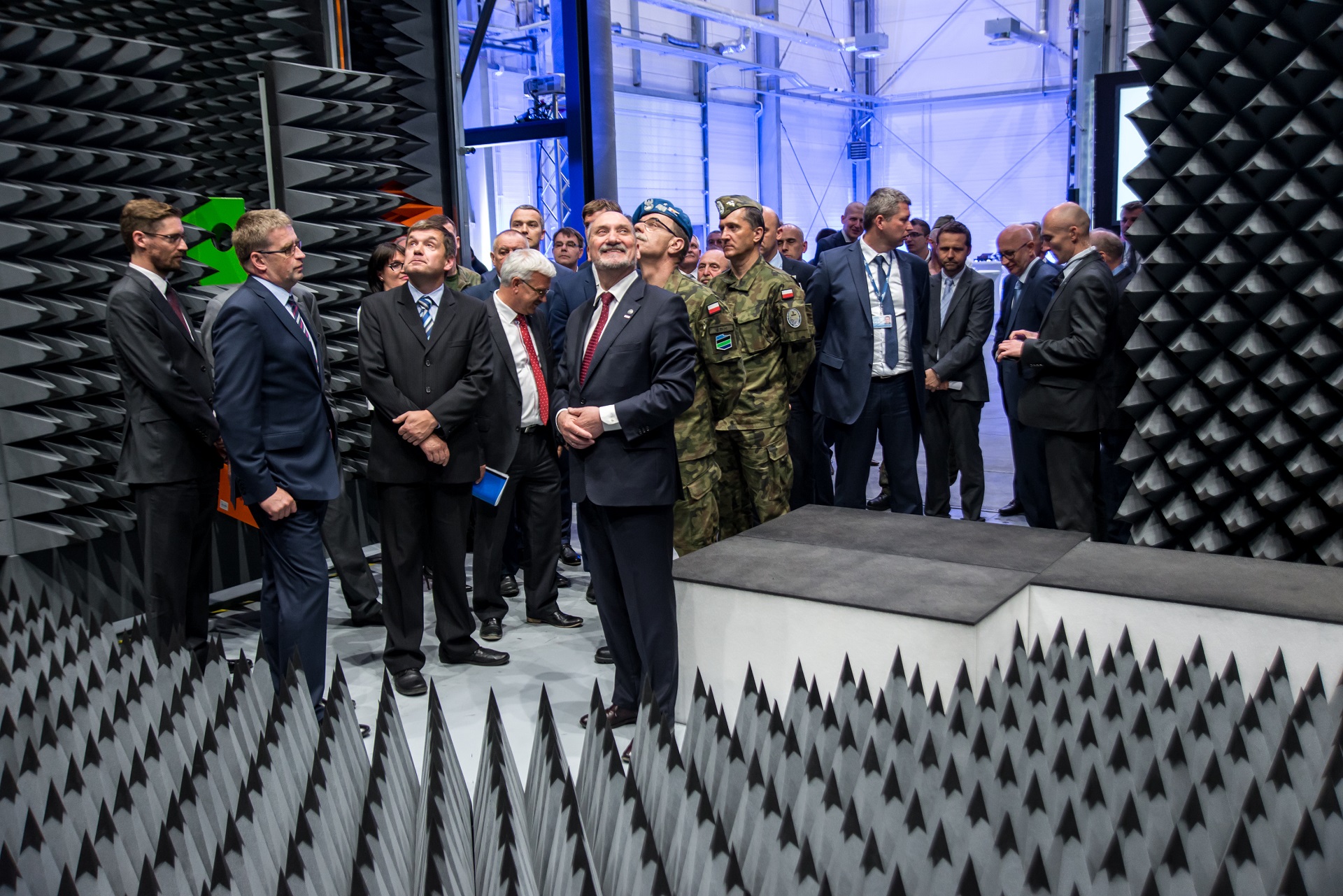 8 czerwca br. odbyło się oficjalne otwarcie Laboratorium do Badań Anten i Kompatybilności Elektromagnetycznej w komorze bezechowej, zrealizowanego w ramach projektu inwestycyjnego spółki PIT-RADWAR S.A. Oficjalnej inauguracji prac Laboratorium dokonał Minister Obrony Narodowej Pan Antoni Macierewicz. Wśród gości znaleźli się przedstawiciele Sił Zbrojnych RP, w tym m.in. gen. bryg. Stefan Mordacz – Szef Zarządu Obrony Powietrznej i Przeciwrakietowej – Zastępca Inspektora Rodzajów Wojsk oraz gen. bryg. Sławomir Kowalski - Inspektor Rodzajów Wojsk, Członkowie Zarządu Polskiej Grupy Zbrojeniowej oraz przedstawiciele władz lokalnych. Podczas wizyty w spółce Minister obejrzał również elementy systemu Nadbrzeżnego Dywizjonu Rakietowego MW (NDR), stacje radiolokacyjne: zdolną do przerzutu stację radiolokacyjną BYSTRA, mobilną trójwspółrzędną stację radiolokacyjną WARTA, multistatyczny system radiolokacji pasywnej PET/PCL oraz aktywny radar dalekiego zasięgu P-18, środki ogniowe: samobieżny przeciwlotniczy zestaw rakietowy POPRAD, elementy baterii przeciwlotniczej z armatami kalibru 35mm: holowana armata przeciwlotnicza kaliber 35 AG-35 i wóz kierowania ogniem z głowicą optoelektroniczną WG-35 a także projekt SAJNA, systemy IFF oraz systemy wspomagania dowodzenia. Stworzenie stanowiska do badań anten i kompatybilności elektromagnetycznej w komorze bezechowej to nowa i unikatowa inwestycja. Stanowiska pozwalają na przeprowadzanie pomiarów z większą dokładnością co wpłynie na eliminacje błędów pomiarowych wynikających między innymi ze zmiennych warunków atmosferycznych występujących w przypadku badań poligonowych. Zgodnie z projektem w ciągu 18 miesięcy na terenie Spółki w Kobyłce powstały dwie niezależne komory bezodbiciowe. wraz z kompletnym wyposażeniem do badań wszystkich rodzajów anten oraz pomiarów kompatybilności elektromagnetycznej obiektów o bardzo dużych gabarytach i masie (np. całych stacji radiolokacyjnych, czołgów itp.) Pierwsza z komór będzie wykorzystywana do pomiarów anten z użyciem lustra tzw. Compact Range o wymiarach geometrycznych 4 x 4 m oraz masie do 3 ton. Zastąpi ona badania na otwartym poligonie W drugiej natomiast będą wykonywane badania kompatybilności elektromagnetycznej obiektów i pojazdów o bardzo dużych gabarytach o masie do 40 ton (np. całych stacji radiolokacyjnych, czołgów itp.) oraz pomiaru anten w strefie bliskiej o masie do 10 ton i gabarytach 6 x 6 m.